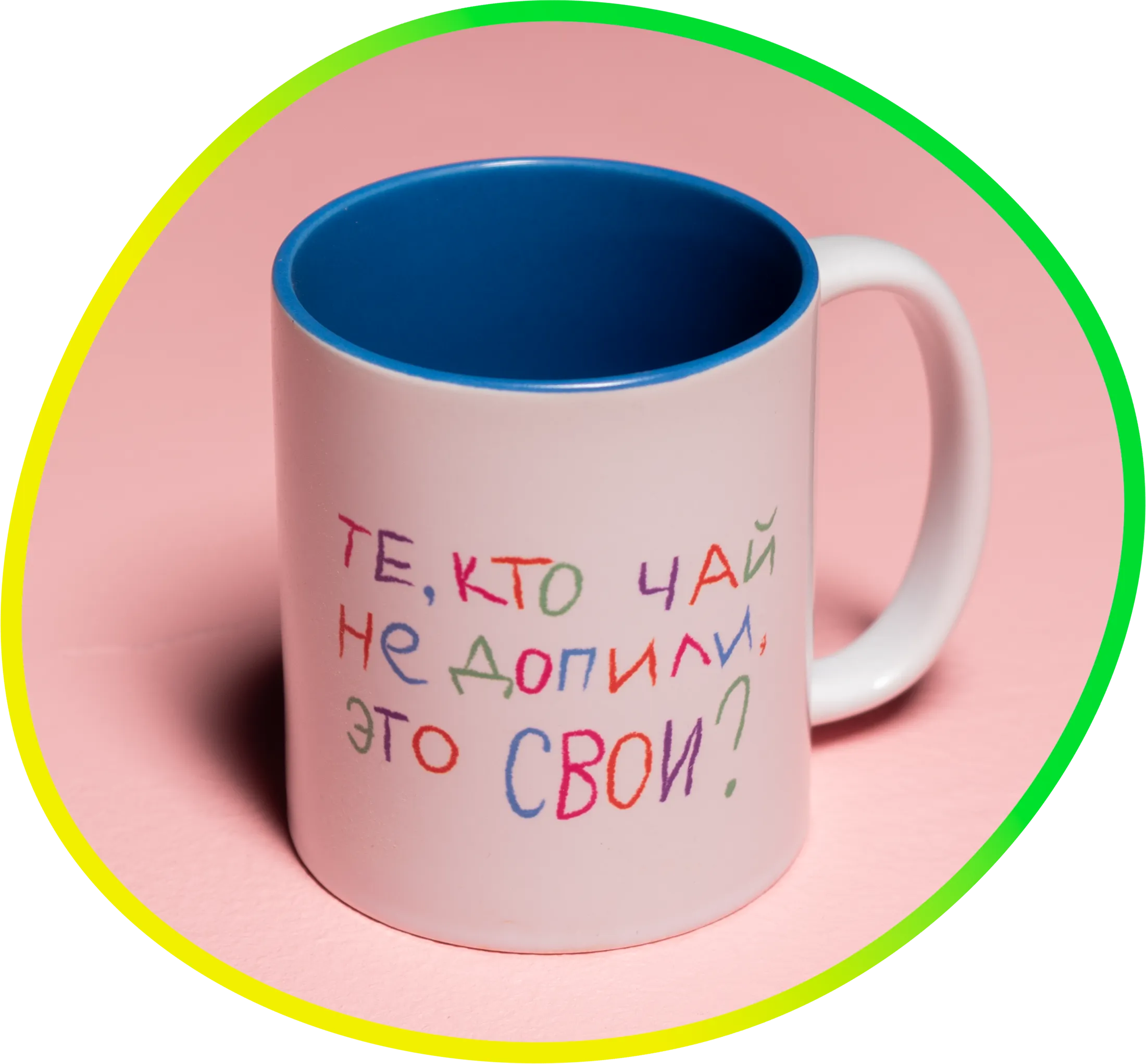 Снаружи белая, внутри синяя. Можно пить чай, кофе, воду, сок, лимонады, что угодно вообще.